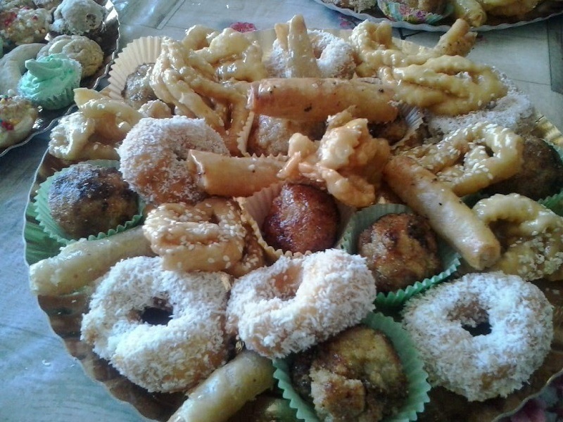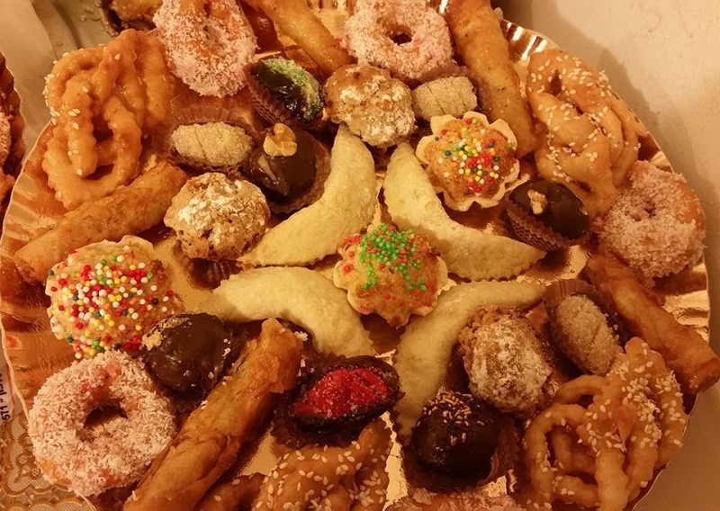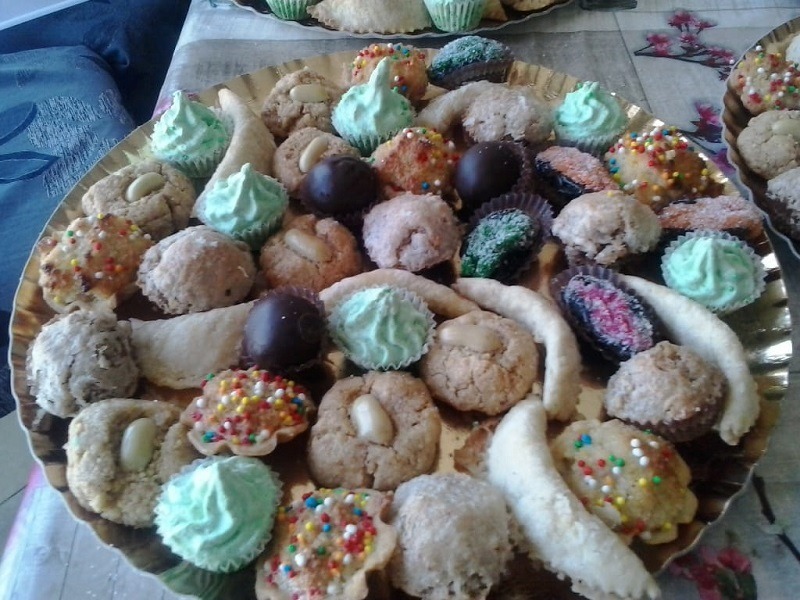 חינה מסורתית שכללה מגשי עוגיות דבש: סיגרים, שבקיות, יויו ומקרוד. מגשי עוגיות מגוונות: מספן, קרני איילה, מרציפן מצופה שוקולד, מרנג קוקוס, תמרים ממולאים מרציפן, עוגיות בוטנים.